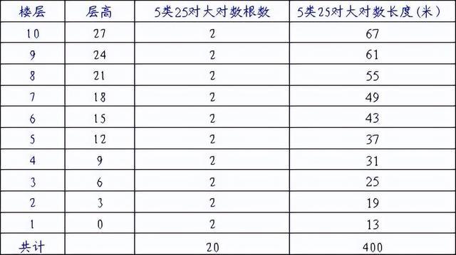 ①每根水平电缆平均长度按(最长+最短)÷2×1.1计算。