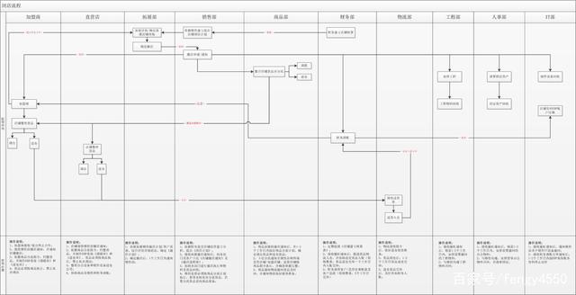 物流负责货品收货,并收货完毕后通知商品和财务,进行财务入账;工程部则在接收撤店通知时,需和销售部对接,清理回收撤店后的工程物料;人事行政则按照清算固定资产,与销售对接固定资产回收问题;