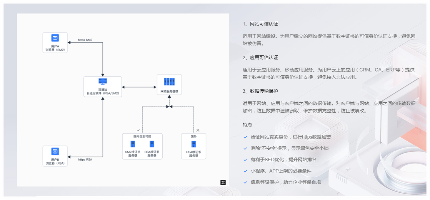 确保数据在传输过程中的安全性和完整性,实现网站的可信身份认证与数据安全传输。